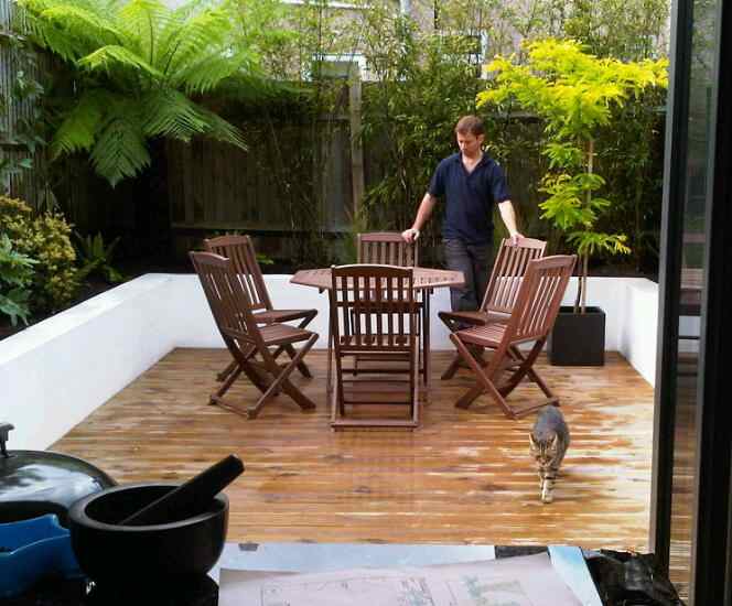 The garden has now been partially planted up – see photos. My clients have used an existing tree ‘Sunburst’ instead of the banana – less dramatic but the yellow leaves light up the little garden.