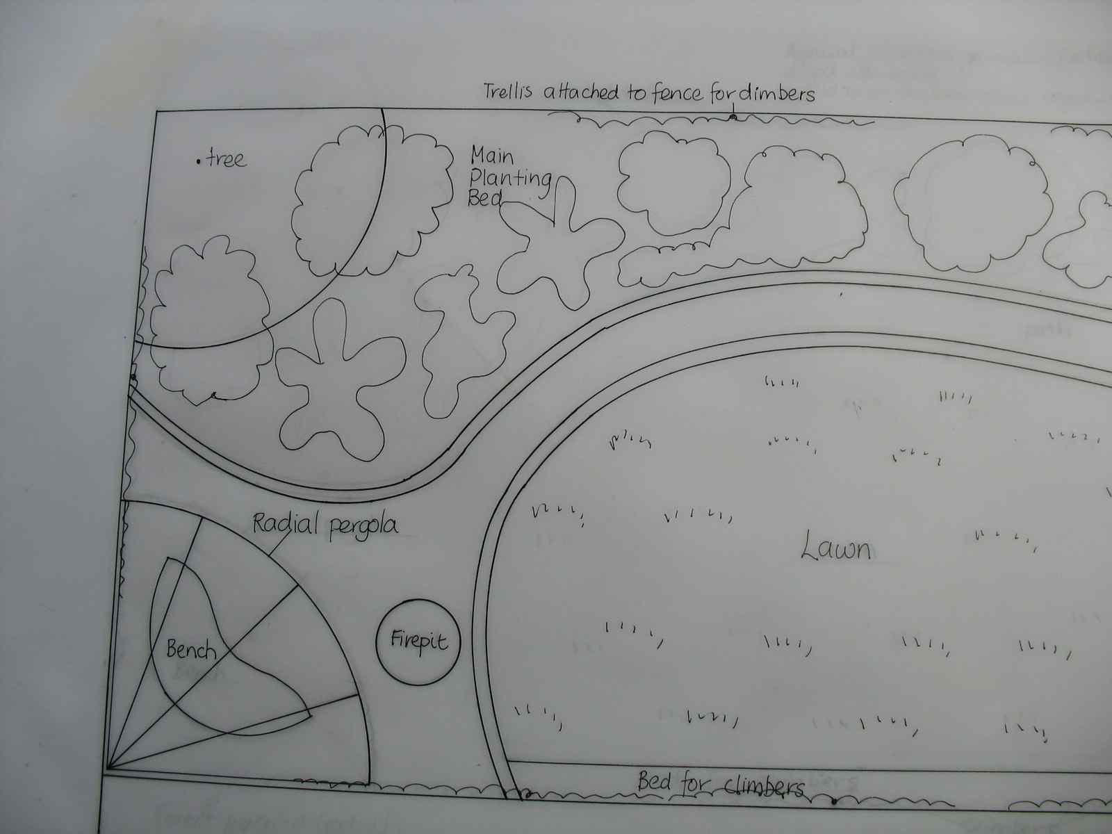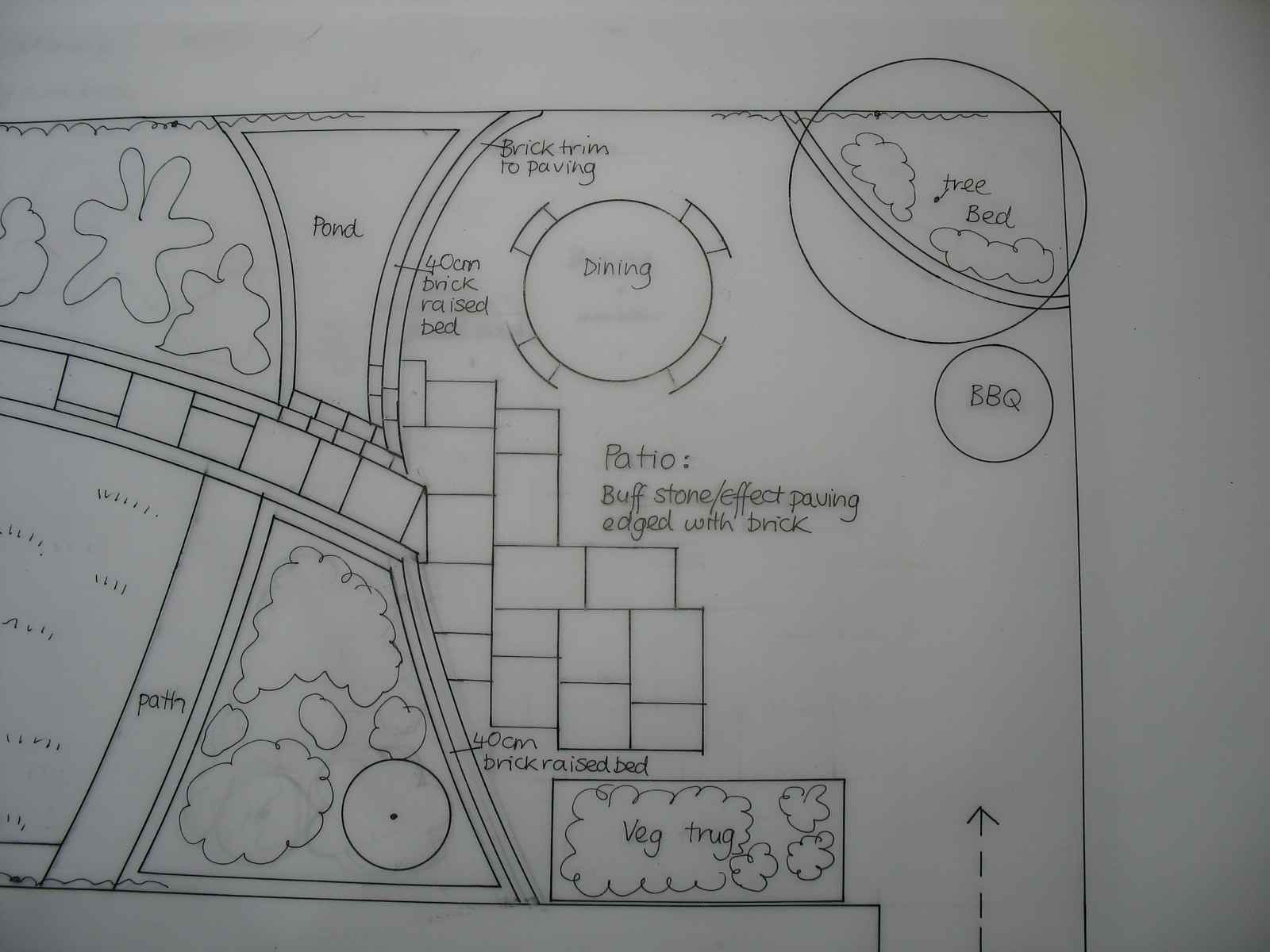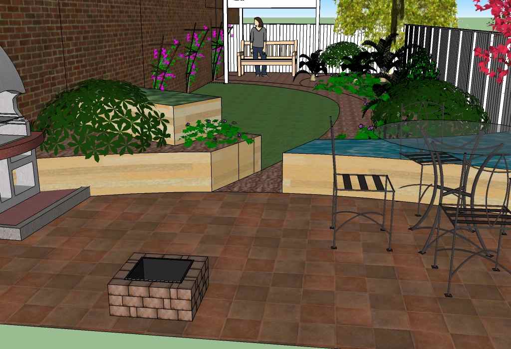 I managed to fit in all his requirements including a large ‘veg trug’, a place to entertain and have meals in, a water feature and a more private area to retreat into at the other end of the garden including a firepit. They are all integrated into a modern curving design.