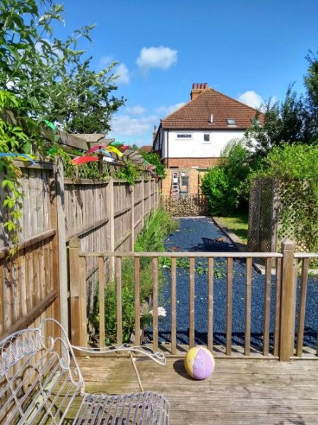 The previous owners had small children, and the garden was entirely designed as a child’s play area. It was successful as one but the narrow space felt cramped and crowded.